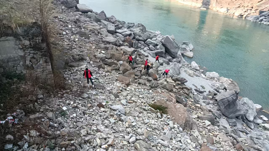 行动现场,参与人员携带垃圾袋、铁钳、扫帚等工具,沿怒江干流阿打村段,对江岸及江堤区域开展地毯式清理。针对江堤坡面、石缝等易积存垃圾的难点区域,党员干部主动带头、冲锋在前,深入缝隙、低洼处清理杂物;群众代表与保洁员分工协作、密切配合,有的弯腰捡拾白色垃圾、废弃杂物,有的负责将清理后的垃圾集中归集、统一清运,大家干劲十足、通力协作,不放过任何一处卫生死角,用双手守护江岸洁净。